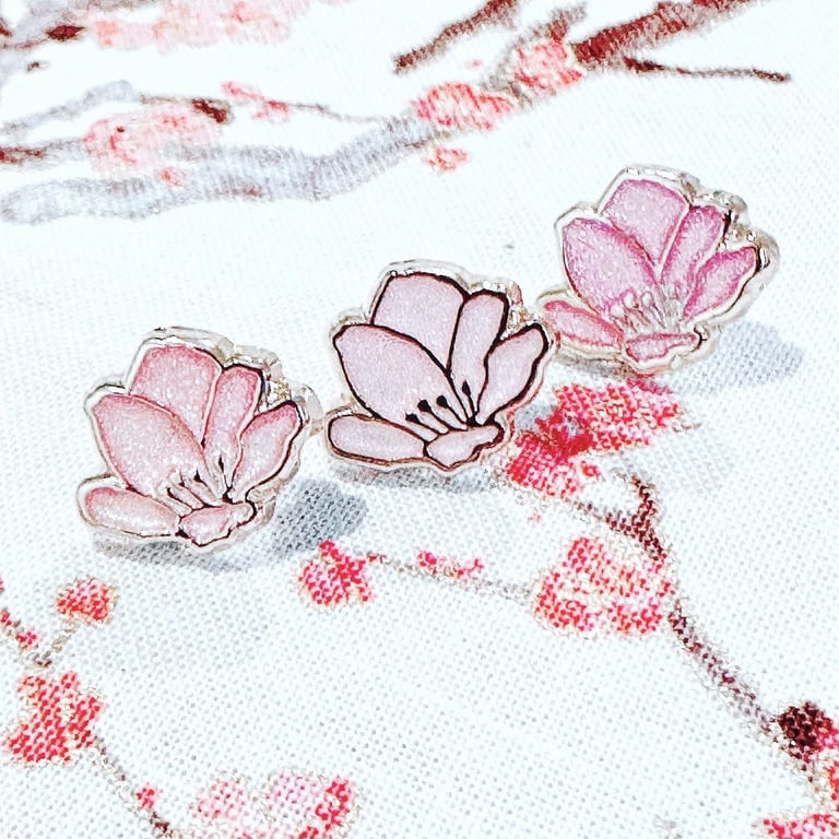 Open edition hard enamel pins. 11 mm each. Pink pearl effects.